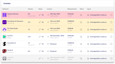 Music EDnet Member Schools have quick and easy access to their software licence details in one centralised portal including automated renewal reminders, adding users, licence agreements and account information.