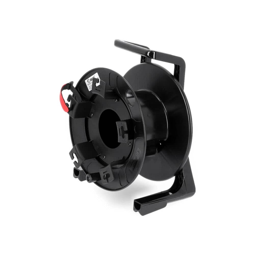 The Adam Hall 70225 cable drum is made of shatter-proof, environmentally friendly plastic and ensures regular, professional transport and storage of cables of all kinds. The sturdy, smooth-running design with ergonomic handle is equipped with a removable cable guide and parking brake and weighs only 1.8 kg.
