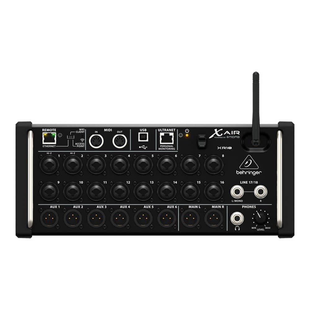 The revolutionary Behringer X AIR XR18 is a powerhouse 18 input/12 bus portable mixer housed in an extremely sturdy stage box design for use with iPad and Android tablets. It is ideally suited for both live and studio applications, thanks to its 16 award-winning MIDAS-designed mic preamps, convenient integrated Wi-Fi module for wireless control – and a lightning-fast, bidirectional USB Audio Interface.