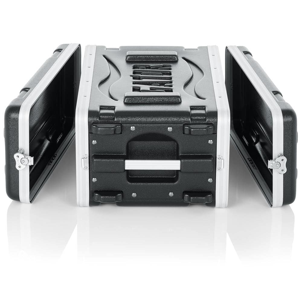 The Gator GR-4S is a moulded PE rack case with front and rear rails, 362 mm (14.25 in) deep. Weight is just 5kg.