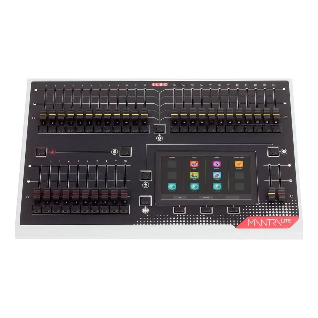 Central to the LSC Mantra Lite is a large colour touchscreen providing immediate fingertip access to most parameters and functions. A clever but simple operating system provides even a novice user with immediate results, whilst still allowing a more experienced user access to advanced functionality like shape FX, multipatch, chases, cue lists with individual in/out times and powerful fan programming.