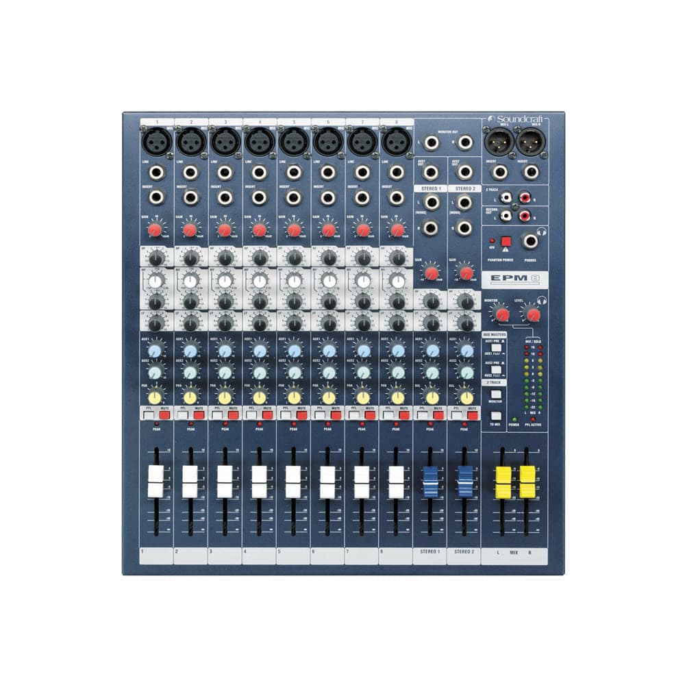 The Soundcraft EPM8 is a low-cost high-performance 8-channel mixer that offers eight pristine mic preamps with the legendary fidelity you have come to expect from Soundcraft.