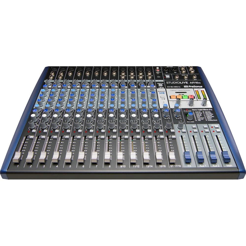 The PreSonus StudioLive AR16c is a hybrid digital/analogue mixer that’s ideal for live mixing and recording. Compact and sturdy construction makes the StudioLive AR16c perfect for the classroom and mobile use.