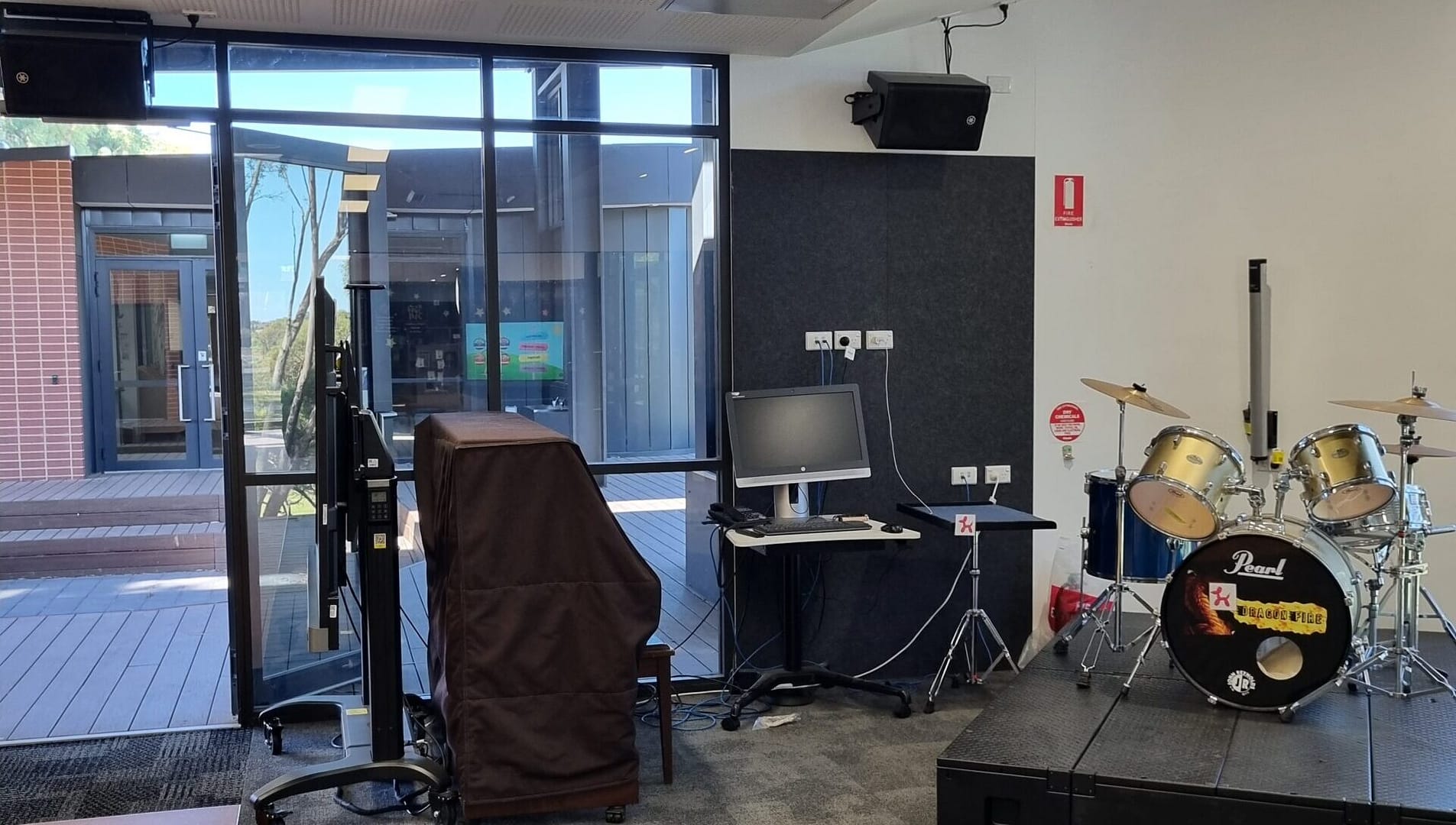 - A large music performance space and adjacent classroom.