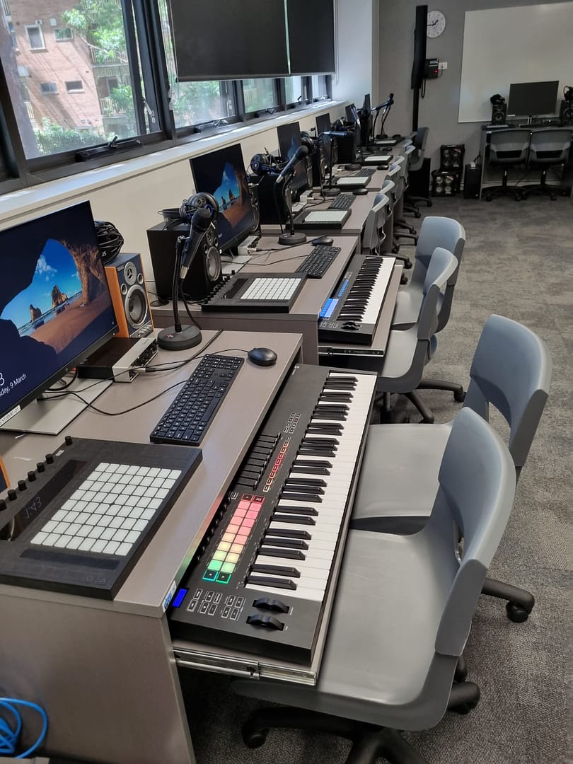 With new building plans still on the horizon the music department was keen to upgrade the existing music lab facilities much sooner if possible. This was a priority for years 7-8 where all students now had laptops and the traditional keyboard lab was no longer practical.